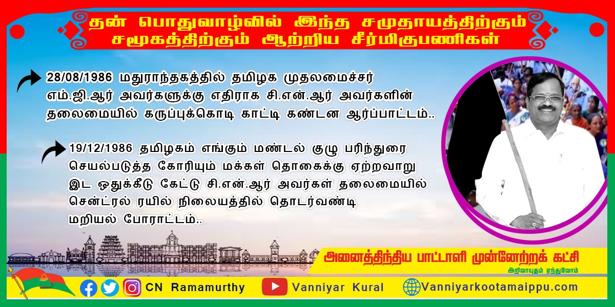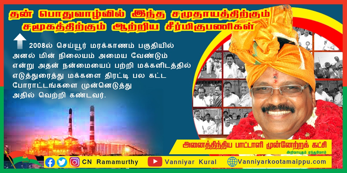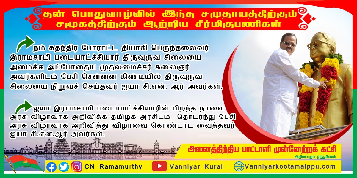 வன்னியர் பொது சொத்து நல வாரியம் / வன்னியர் நல வாரியம் மூலமாக பல அரியத்திட்டங்களை வன்னிய இன மக்களின் நல வாழ்வுக்காக அக்னிகுல பெருந்தலைவன் சி.என். இராமமுர்த்தி செயல் படுத்த உள்ளார்.