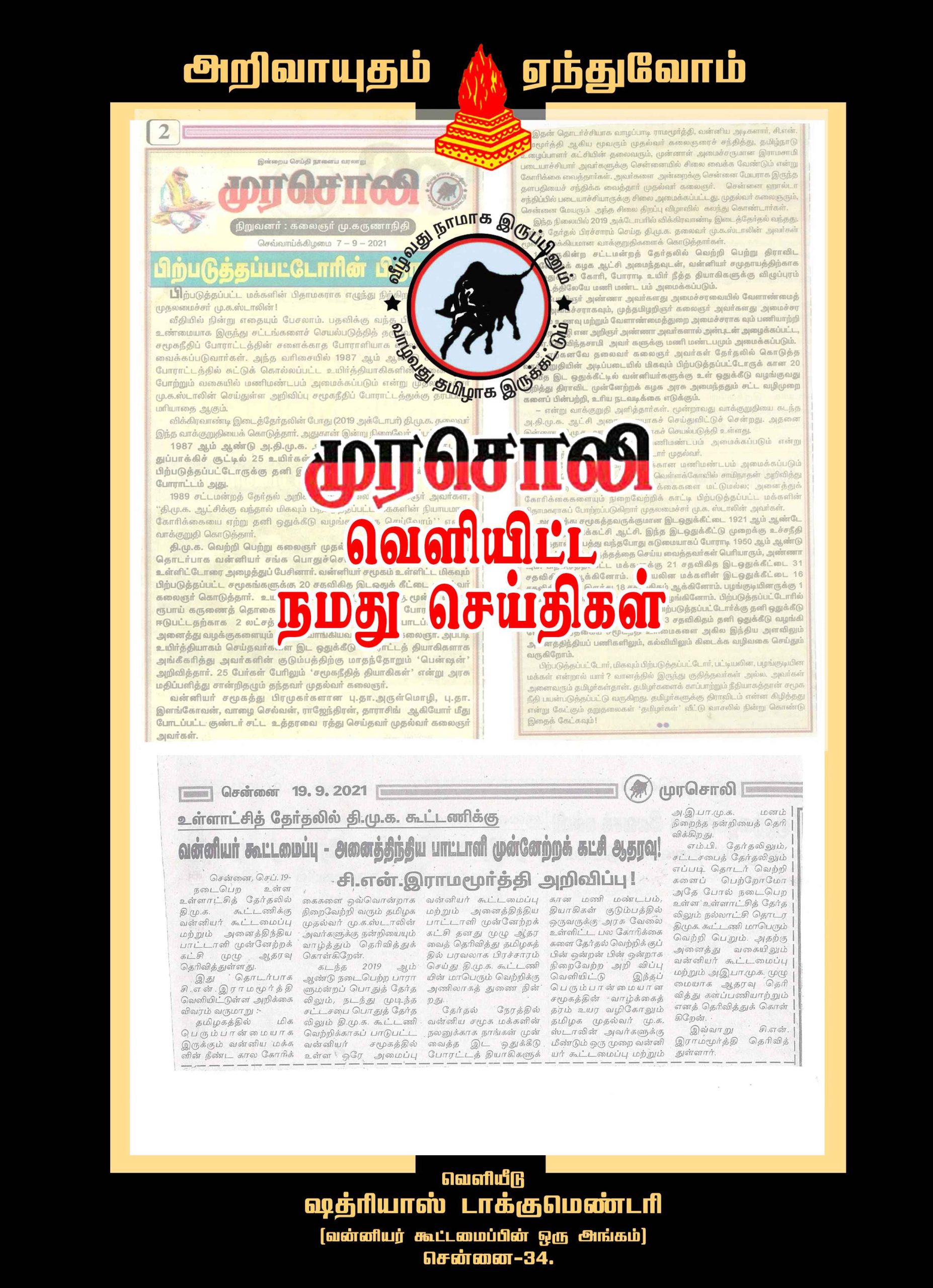 முரசொலி பத்திரிகையில் வெளிவந்த செய்திகள்.